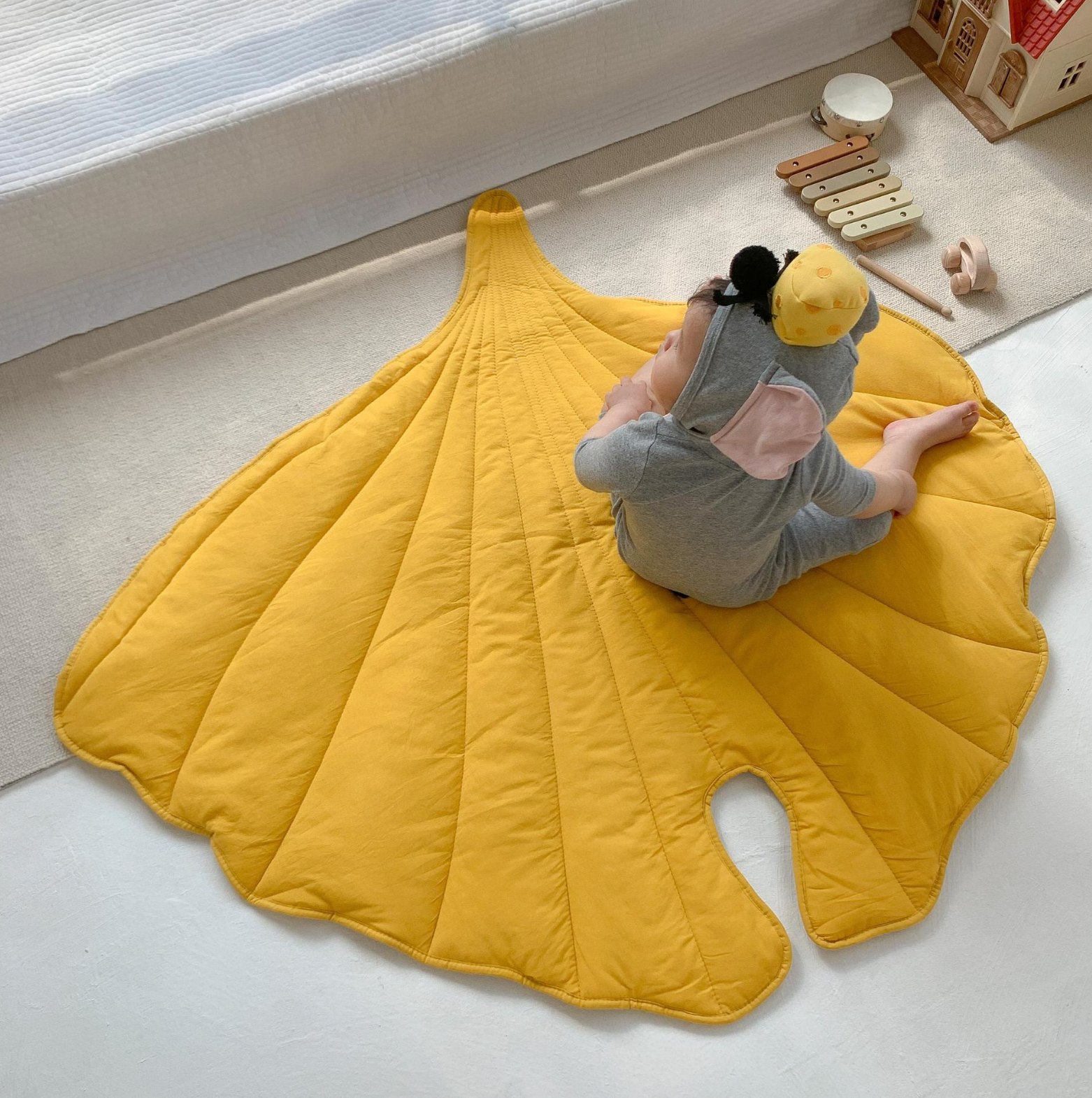 Gingko Leaf Floor Mat - a premium crawling pad for babies made from high-quality pure cotton. This enchanting mat is designed to provide a comfortable and safe play area for your precious little one.