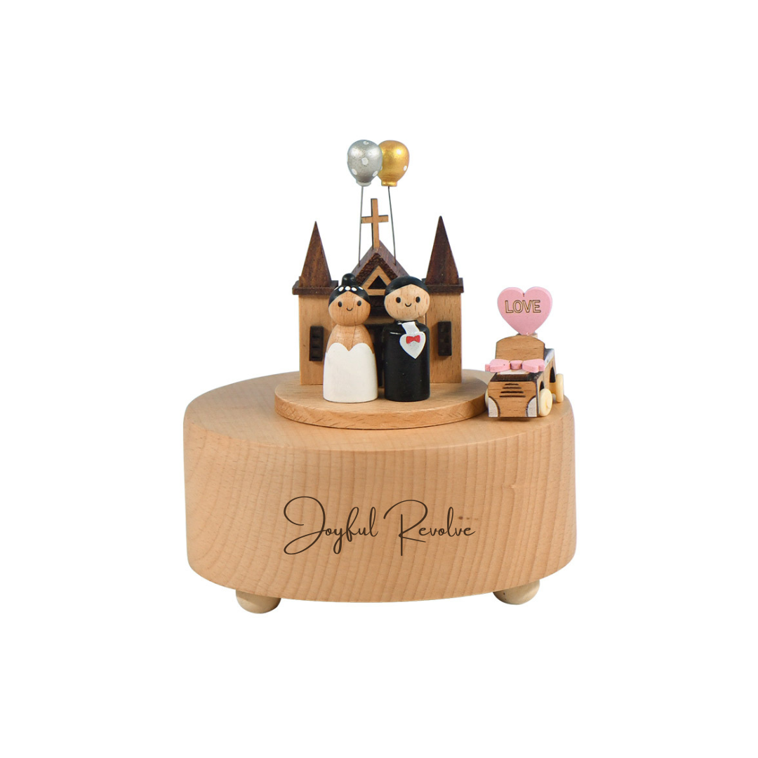 Discover the exquisite craftsmanship of Joyful Revolve with our enchanting Happy Wedding music box.