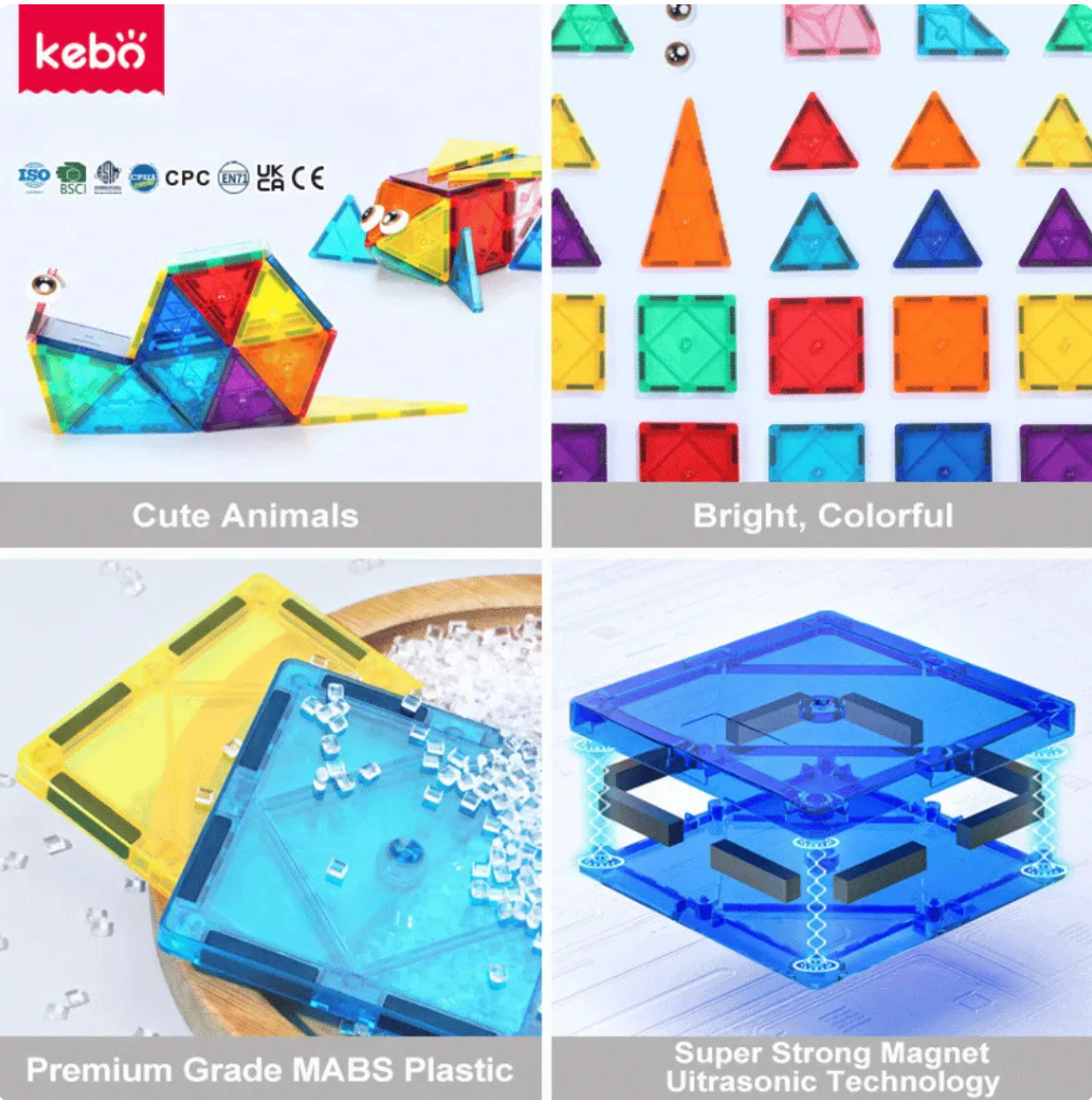 Transform playtime into a creative adventure with the Kebo Magnetic Tiles 40-Piece Animal Builder Set, where your child’s imagination comes to life!