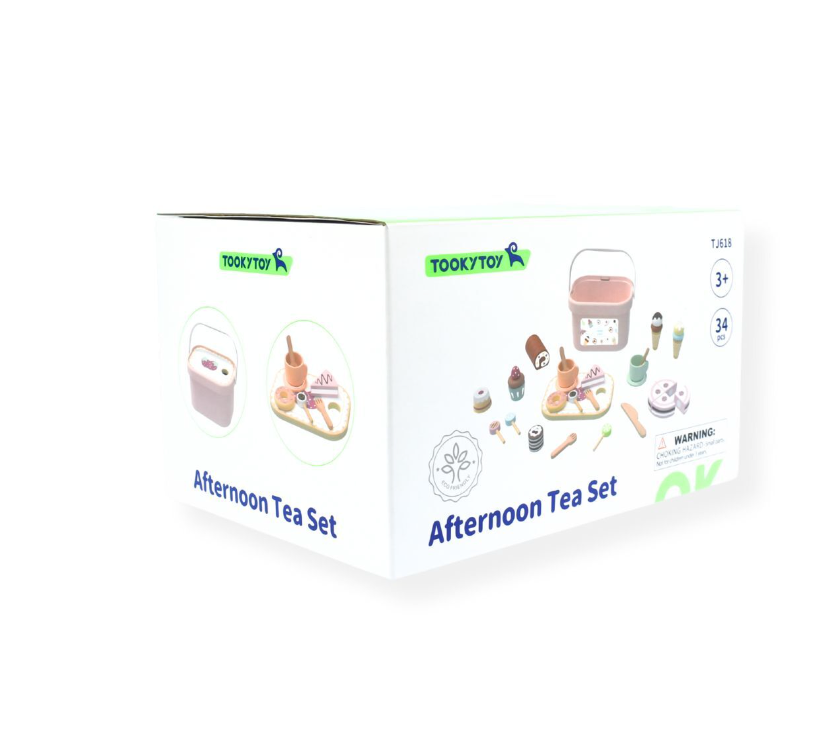 The Tooky Toy Afternoon Tea Set is a beautifully crafted playset that transforms ordinary playtime into a delightful tea party experience. Made from high-quality Juniper wood and durable plywood, each piece is carefully finished and painted with non-toxic, child-safe colours — ensuring a safe and worry-free playtime for little hosts and guests alike.
